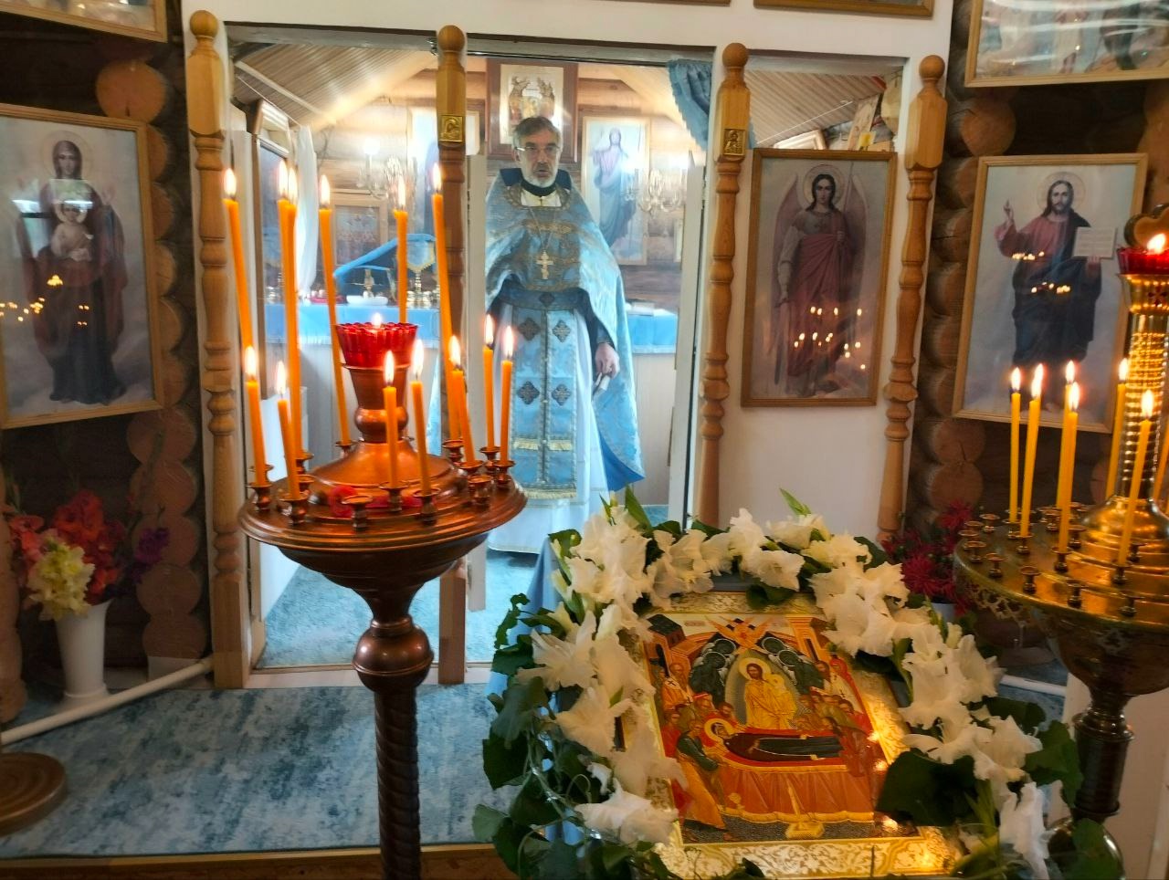Божественную литургию в день Успения Пречистой Матери Божией возглавил иерей Сергий Тронин. Это первая литургия молодого священника в приходском храме села Тыловай. На клиросе помогала матушка Любовь и казначей храма Ольга Юферева. На праздничную службу собралось более 20 человек, 15 из них пожелали исповедоваться и принять Святое причастие.